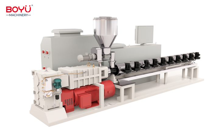 挤出的SPC材料是否优质,主要由以下几个关键因素决定: ✔ PVC、石粉和添加剂是否混合均匀 ✔ 所有温度区域的加热和冷却是否可控 ✔ 产量和压力控制是否可调节 平双 VS 锥双 双螺杆挤出机主要有两种配置——平行和锥形。它们根据具体的生产需求提供不同的性能。 平行双螺杆挤出机 平行螺杆挤出机包含两个直径均匀的螺杆,通常具有桨式螺旋,可将物料稳定地推入机筒。它们并排旋转,没有混合区,这种简单的设计可以进行高产量 加工,但混合效果不如锥形双螺杆挤出机。 平行双螺杆挤出机专为持续高产量应用而设计,其优势包括: 1、均匀混合:机筒溢流和桨式螺旋使物料充分混合,实现均匀混合 2、产量更高:由于没有更复杂、更受限制的混合段,因此产量更高 3、节能高效:节能高效,因为其结构简单,在相同产量下比锥形双螺杆挤出机功耗更低 锥形双螺杆挤出机 锥形双螺杆挤出机包含两个螺杆,其直径沿长度方向逐渐减小。它包含了专门的混合段,可以容纳更紧密的螺杆或以不同的角度定向,以实现更彻底的混合。 锥形挤出机擅长加工需要优化控制的树脂,其优势包括: 1、高效处理:利用螺杆锥度实现更佳的进料特性,从而高效地预处理纤维或填料 2、压力稳定:针对特定任务设计了不同混合区域,从而提升了压力稳定性 3、配方多样:个性化螺杆配置使其配方类型多样,并可进行调整 两种挤出机类型均满足SPC地板材料的挤出需求:平行双螺杆挤出机适用于产量更高的系统,而锥形双螺杆挤出机则提供更佳的控制力和灵活性。产量水平、 配方复杂性和订单规模等生产需求决定适配的挤出机。 挤出机的终极之选 博宇塑机成立于1998年,专注于制造地板挤出生产线,是SPC地板挤出生产线的先驱者。 SPC锥形双螺杆挤出生产线 我们的锥形双螺杆挤出生产线能够生产出质量稳定的SPC材料,该生产线采用PLC控制系统并获得CE认证,具有以下特点: ✔ 节能高效 ✔ PLC自动化监控并调节螺杆转速、加热和压力,确保产品质量稳定 ✔ 智能电子控制系统 ✔ 可靠及低故障率
